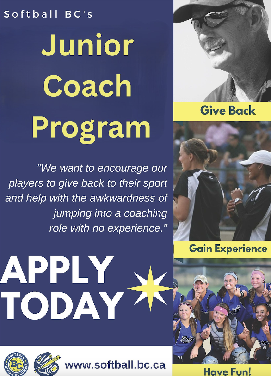 - Must be a Softball BC Rostered Coach.